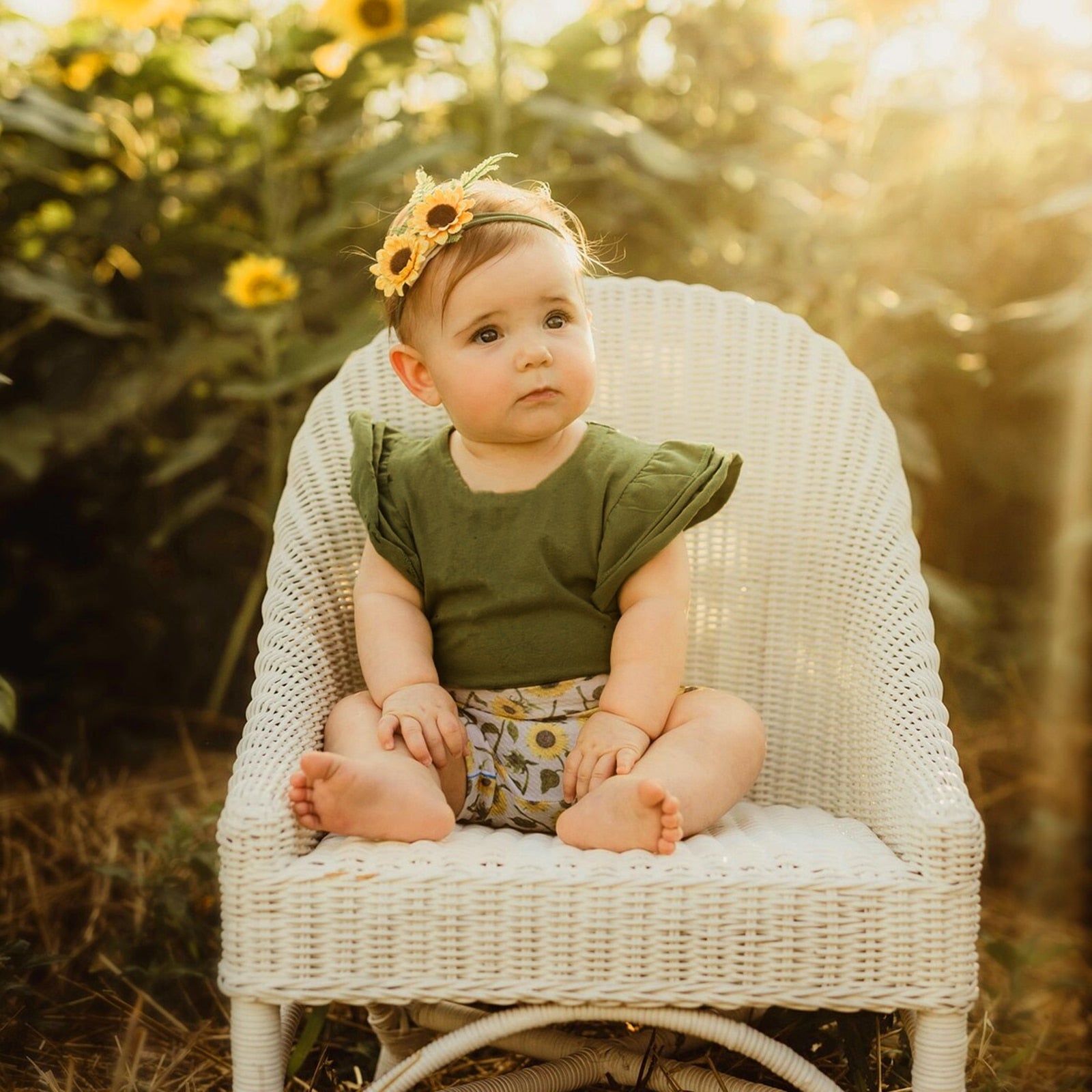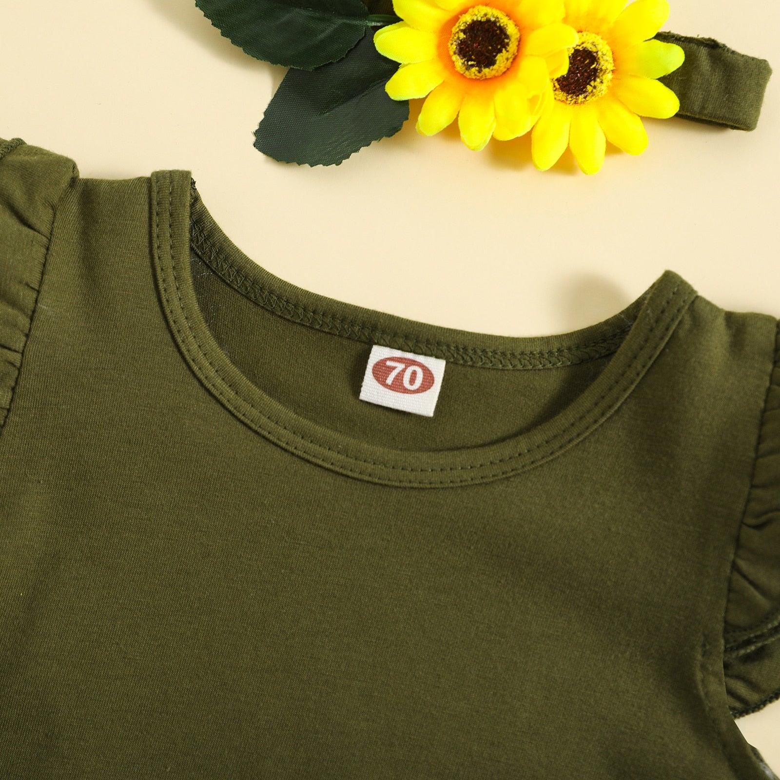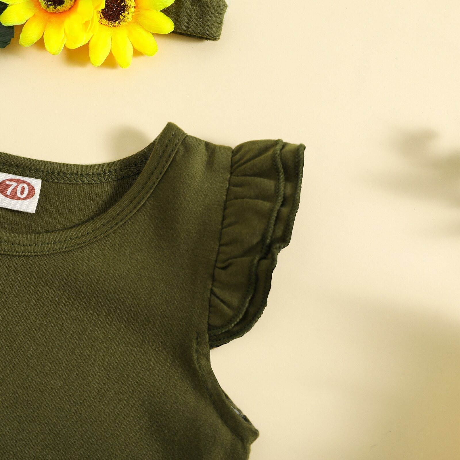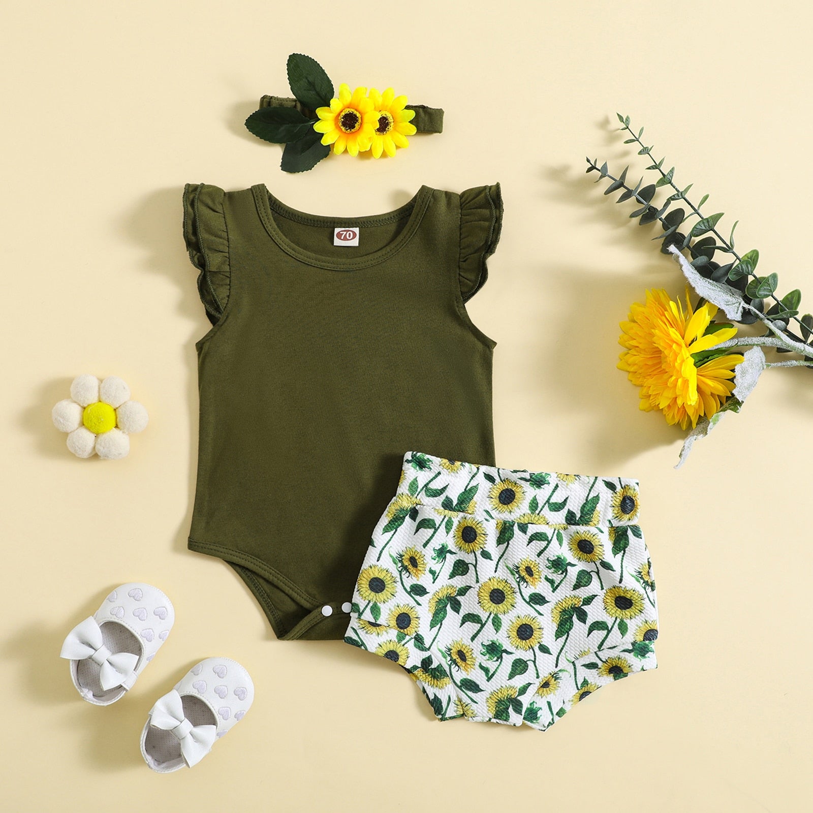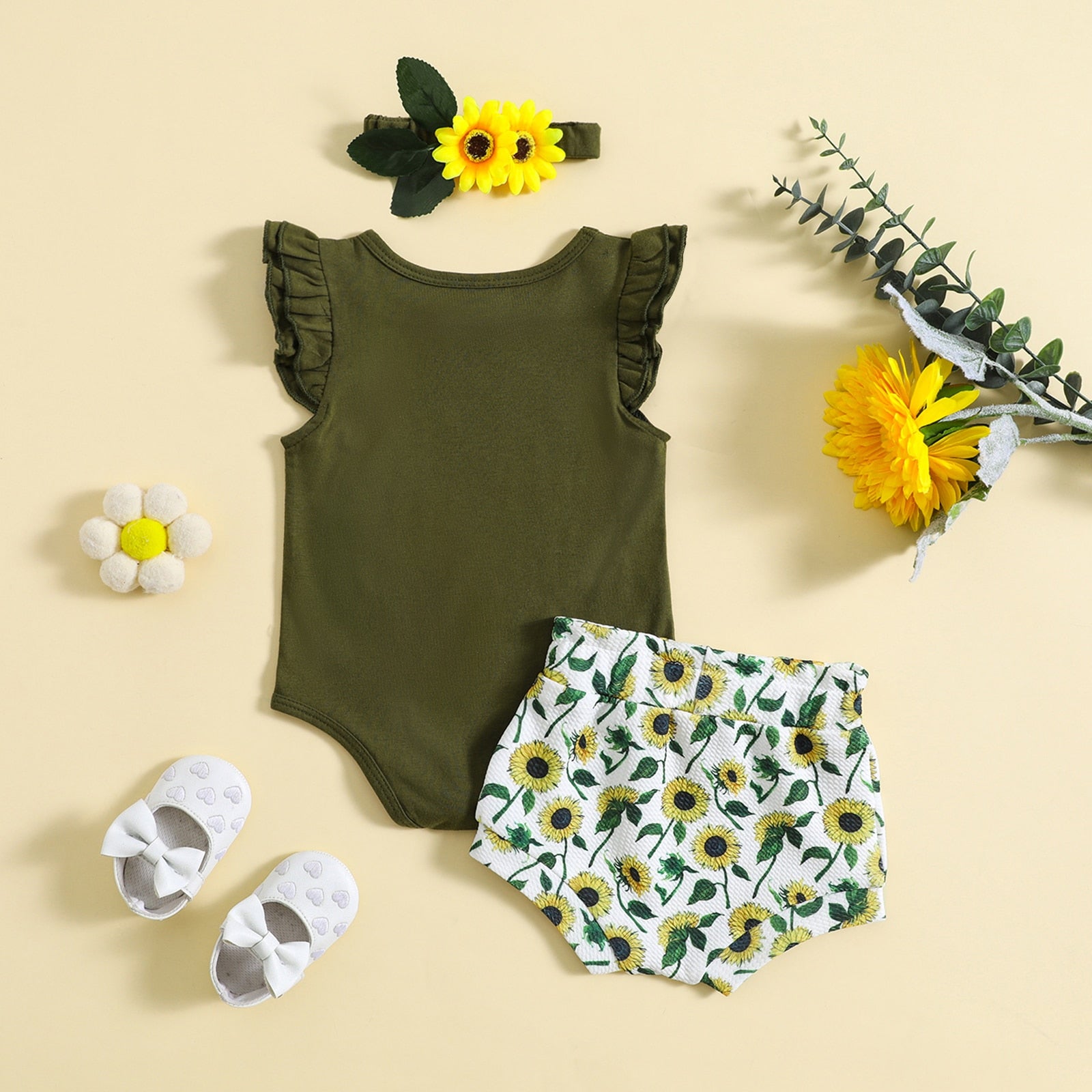 Green set with sunflower shorts + headband