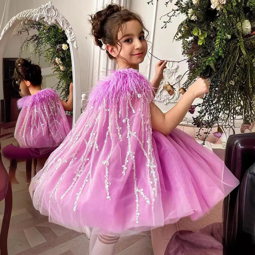 Shiny Party Dress with Feathers